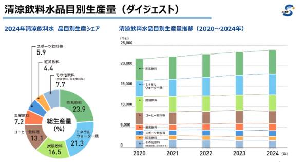サントリーが特水を発売するに至った最大の理由は、「ミネラルウオーター市場」の拡大だった。全国清涼飲料連合会の「清涼飲料水統計2025」によると、ミネラルウオーター類の生産量は2020年から5年連続で前年を上回り、2024年は前年比104.1%の502万9500キロリットルと過去最高だった。