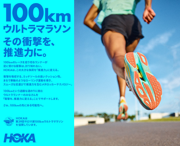 なお、HOKAはサロマ湖100キロウルトラマラソンに協賛しており、「HOKA 100km ワールドレコードチャレンジ」という企画も実施している。世界記録賞には賞金100万円を用意するなど、広告投資にも積極的な姿勢を見せている。
