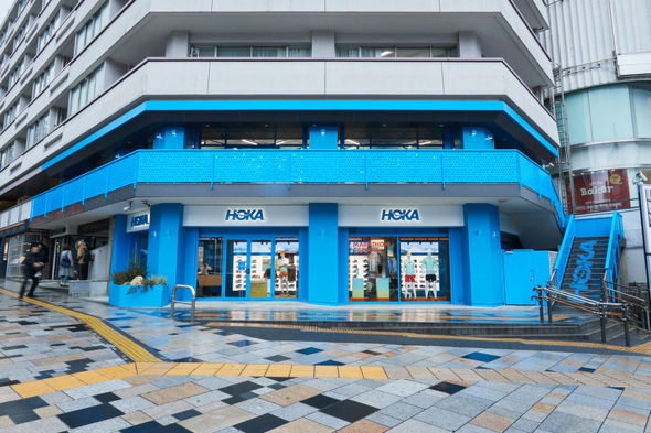 一等地への出店もブランドイメージのアップにつながっている。2024年2月に国内最大の直営ストア「HOKA Harajuku」を東京・原宿の神宮前交差点にオープン。ブルーを基調としており、遠くからでも目を引く店舗になっている。