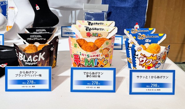 40周年を記念し、4月7日からは全国の店舗で新フレーバーを順次発売する。「からあげクン ブラックペッパー味」(278円)、「でからあげクン 夢のMIX味」(278円)、「サクッと!からあげクン塩味」(298円)の3商品だ。
