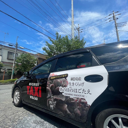 「タクシー事業として地域で積み上げてきた信頼と人脈が、そのまま販路になりました」と清水氏。現在の販売比率は卸が約8割、会社での直売とECで2割のバランスだ。自社タクシー車両には「あの日のはごたえ」の広告を貼り、走る広告塔としても活用している。