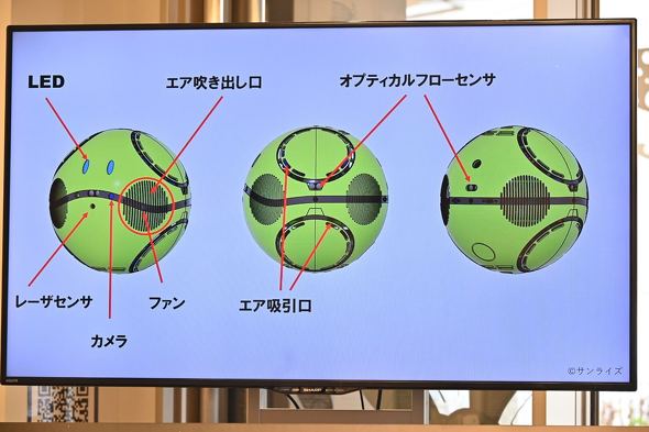 筐体は宇宙での安全基準をクリアするためアルミ製で、直径約20センチメートル、重量4.5キログラム。無重力空間での移動を実現するため、内部のプロペラから空気を吹き出す出口を4カ所に配置している。吹き出し口は「ハロのほっぺ」に見えるよう、大河原氏が円形にデザインした。