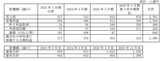 2023年3月期以前の累計で売り上げ取消額は417億円だったが、2025年3月期には単年で824億円、2026年3月期は第3四半期までの9カ月間だけで676億円に達している。外部流出額も、2023年3月期以前の17億円から、直近2年間だけで計276億円へと爆発的に増えた。影響額全体の約85%が最後の2年間に集中している。