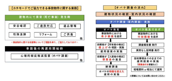 また、配管や建物構造に起因する音など、不動産業界では「当たり前」の現象だとしても、入居者には"原因の分からない不気味な事象"として受け取られることも少なくない。それなら「不思議なことは全て『オバケ』としよう」という発想から、「オバケ調査」という名称が生まれた。