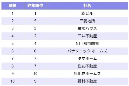 不動産業界では、1位「森ビル」、2位「三菱地所」、3位「積水ハウス」が続いた。