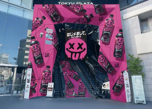 SNSでは、ノープの派手な宣伝施策も話題をさらった。久々の大型ブランドということもあり、過去の大型新ブランドと同等の予算を投じ、マーケティングを実施した。俳優の生田斗真さん、鈴鹿央士さん、芸人のアントニーさんを起用し、テレビCMをはじめ、交通広告や街中の看板、商業施設や自販機のラッピング、SNS投稿など、あらゆる手段で宣伝。その結果、発売1週間で出荷本数2000万本に達したという。