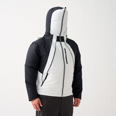 電動ファン付きの「XShelter暑熱α コンバーチブルファンジャケット」(4900円、ファン/バッテリー別売り)も発売する。フードのファスナーを上げると顔の前面まで覆える仕様で、顔や頭部にも風が行き渡る設計とした。