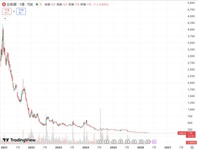 4月23日、出前館の株価は119円をつけ、時価総額は133億円まで売り込まれた。同社は2020年12月に上場来高値として4000円台、時価総額にして5000億円をつけていた企業だ。