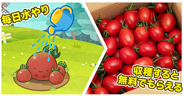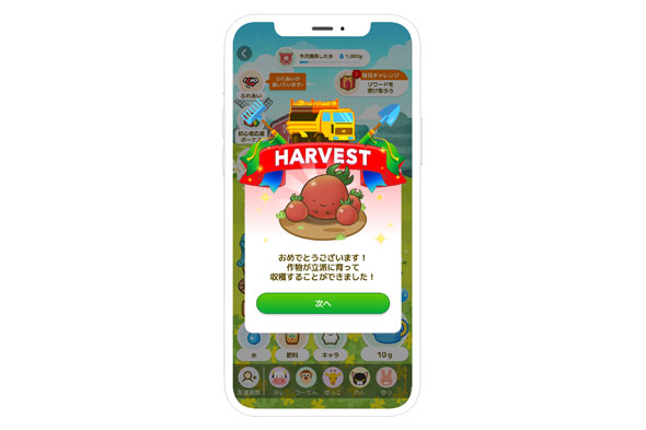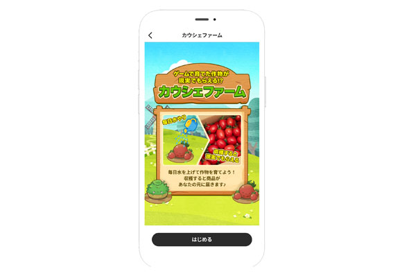 利用者は好きな野菜(じゃがいもや玉ねぎなど)を育て、収穫のタイミングでクーポンをもらえるといった仕組み。筆者も試したところ、1日に何度か水をやって、野菜が育つのを見守るだけなので、“ほのぼの”とした印象を受けた。