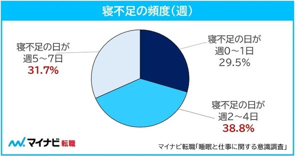 寝不足の頻度は「週2〜4日以上」(38.8%)が最も多く、「週5〜7日」(31.7%)、「週0〜1日」(29.5%)が続いた。