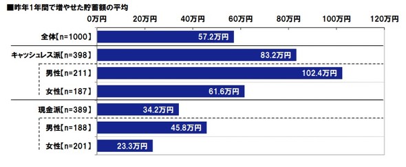 ジェーシービーやあおぞら銀行の調査で、実は現金派よりもキャッシュレス派の方が貯金額が多いということが明らかになっている。ジェーシービーの「キャッシュレスとデビットカード利用意向に関する実態調査2019」によると、キャッシュレス派の方が現金派よりも2.4倍、貯蓄が増加したことが判明している。また、あおぞら銀行の「キャッシュレス時代の貯金に関する調査」では「思い描いた通りの貯金ができていると思いますか」という質問に対し、できていると答えたのは、現金派(27%)に対し、キャッシュレス派(40%)の方が多かった。