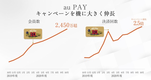 - au PAY決済回数 2020年春のキャンペーン前から2.5倍