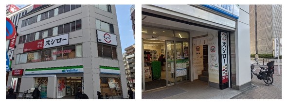 筆者が訪れたのは、都内にあるスシロー大森駅前店。駅前の一等地ではありますが、お店は2階に位置しています。また、店舗入口は1階にあるファミリーマートと隣接しており、あまり分かりやすい場所とはいえませんでした。