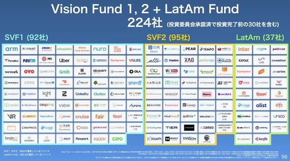 そのために、SVFでは投資先企業の数を増加させている。すでに10兆円の投資を完了させたSVF1号の投資先企業数は92社。一方で、単独で始めたSVF2号の投資先は95社に達している。さらに、ラテンアメリカのベンチャー企業へ投資する「LatAm」でも37社への投資を行っている。いずれも、創業間もない企業ではなく、数年後の上場が予想されるいわゆるユニコーン企業だ。