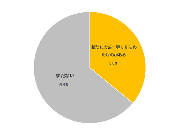 新しい取り組みを実施する企業も4割弱、現れています。新たな取り組みを実施した企業の具体的な取り組み例としては、以下になります。