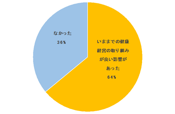 「これまで健康経営の取り組みを実施してきたことで、新型コロナ流行への対応について 良い影響を及ぼしたことはありましたか?」という質問に対して、6割以上の企業が「良い影響があった」と回答しています。