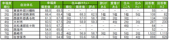 「街の幸福度ランキング」は、1位が「川棚町」、2位が「時津町」、3位が「長与町」だった。
