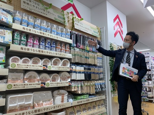 銀座店では、環境に配慮した商品を大きく打ち出している。廃棄物削減を意識したシリコンのストローや、フードロスの観点から野菜の鮮度を長期間保持する保存袋など、他店にない品数を誇る。さらなる海外展開を見据える大創産業にとって、環境問題への意識が高い海外の人々に売り込むためには、環境配慮は無視できないポイントだ。