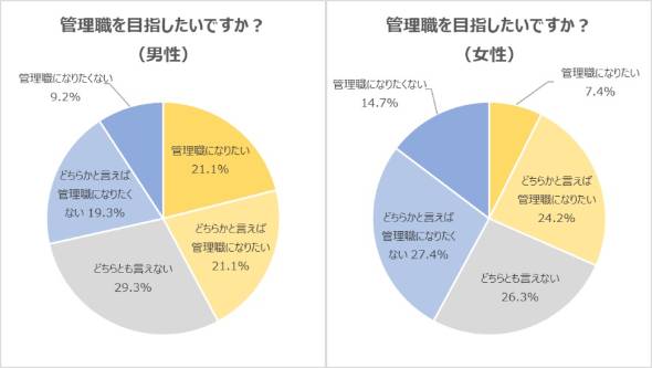 一方で、「まずは最初のステップとして、主任や係長を目指したい」「現時点では管理職は目指していないものの、役職を1つずつ上げていくなかでゆくゆくは挑戦してみたい」といった声も聞かれ、慎重に1つずつステップを上がっていきたいという意向もうかがえた。