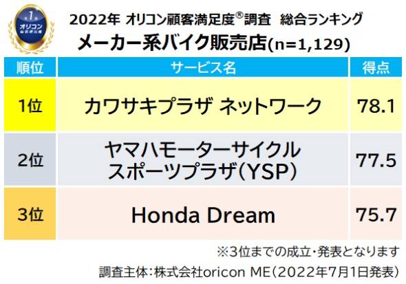バイク専門販売店、メーカー系バイク販売店の満足度1位は?:オリコン調べ(2/3 ページ)