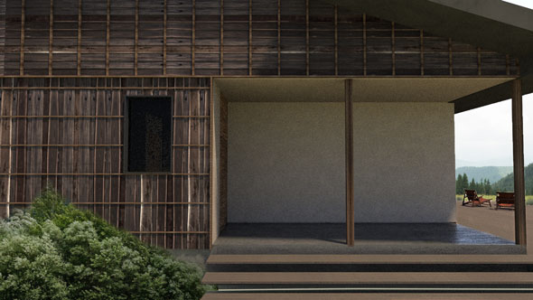 「自然に手を加えてきれいに仕上げることが行き過ぎると、人工的になりすぎて人と自然のバランスが崩れてしまう。この宿ではそうではなく、完ぺきではない自然物をそのままに受け入れて付き合っていく、そんな空間とすることを目指している」とコメントしている。