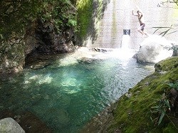 午後4時30分以降は同日の宿泊者と一緒に天然プールで遊び、そのまま車で町の銭湯に行き居酒屋で夕飯を取り帰宅した。庭に置かれているトランポリンに寝そべって満天の星を眺めたり、青年が蛍ツアーに連れて行ってくれたりと地域の魅力を存分に体感できた。