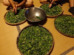 午後10時、そろそろ就寝と考えていたが、なぜかそこから1時間半ほど他の宿泊者が摘んだ茶の葉をすりつぶす作業に従事することに。地域住民との深い交流は叶わなかったものの、観光で訪れていたら体験できなかったであろう土地の魅力や特色に触れられた。