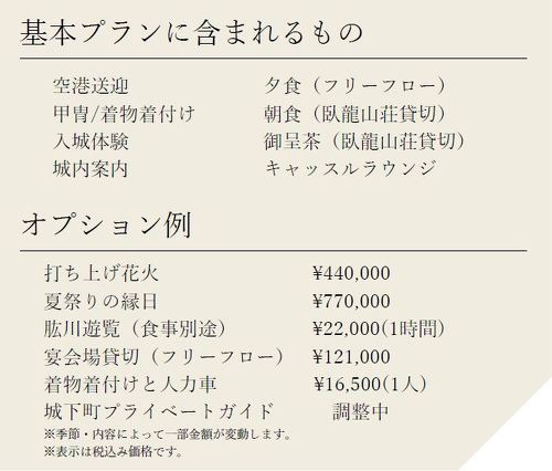 「宿泊者の方は、口をそろえて『100万円は安い』とおっしゃいます。これは、われわれとしても、良い驚きでした。甲冑を着て城に向かい、何十人もの家臣や楽隊が出迎える入城セレモニーを体験した時点で『採算合ってる!?』『(100万円は)安すぎない?』と言われることが少なくありません。食事の評価も高いです」