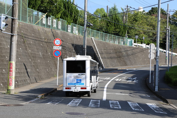東急と東急バスが9月13日〜15日に多摩田園都市の住宅街で「自動運転モビリティの実証実験」を実施した。実験コースは横浜市青葉区すすき野付近で、反時計回りに4つの信号機付き交差点を巡って戻る。使用車両は8人乗りの小型バス。この小さな車両が選ばれた理由から、課題が見える。