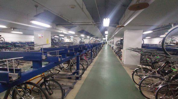 チェックポイントにはないけれど、筆者が推すもうひとつの豊橋名所は「豊橋駅地下駐輪場」。駅前再開発で設置した広大な駐輪場だ。東口(とめちゃりん東)は3300台の自転車と900台の原付自転車、西口(とめちゃりん西)は1200台の自転車と100台の原付自転車を収容する。圧倒的な規模で駅前の違法駐輪を一掃したという。18年前に見たとき、こんな駐輪場が自宅最寄り駅に欲しいと思った(筆者撮影)