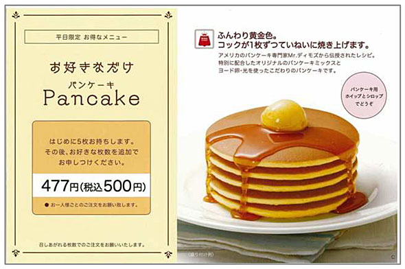こういう状況を変えるため、マーケティング担当者は知恵を絞って、「お好きなだけパンケーキ」を立案して話題化に成功、これによって注文は1日20人に増えたというのである。しかし、これは12年前の話だ。現在はもっと苦しい戦いを強いられている可能性が高い。
