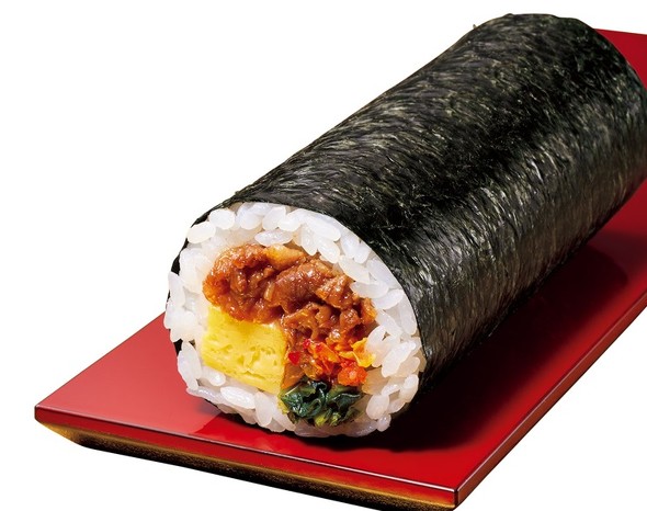 ローソンは、有名チェーン「焼肉トラジ」監修の「焼肉トラジ監修 黒毛和牛カルビ焼肉恵方巻」(1598円)を発売する。具には、黒毛和牛カルビ焼肉、厚焼き玉子、白菜キムチ、小松菜ナムルを使用している。トラジ監修の特製タレに黒毛和牛肉をつけて焼いているのが特徴だ。
