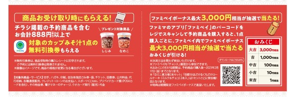 フードロス削減の観点から、コンビの大手各社は恵方巻やクリスマスケーキといった季節商品の予約販売を強化している。ファミマもその流れは踏まえており、予約をした顧客に対してカップみそ汁の無料引換券をプレゼントをするといった特典を打ち出す。担当者は、「クリスマス商戦では、予約販売が好評だった。予約した商品を持ち帰り、家族で楽しむという流れが定着している。恵方巻にも同様の消費動向が見られる」と説明する。