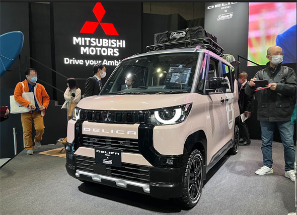三菱が発表した新型軽自動車デリカミニ。ekシリーズのプラットフォームを利用した派生モデルで、マイルドハイブリッドを搭載。22年11月に投入を発表していたが、ユーザーの目に触れるのは、この東京オートサロンが初となる