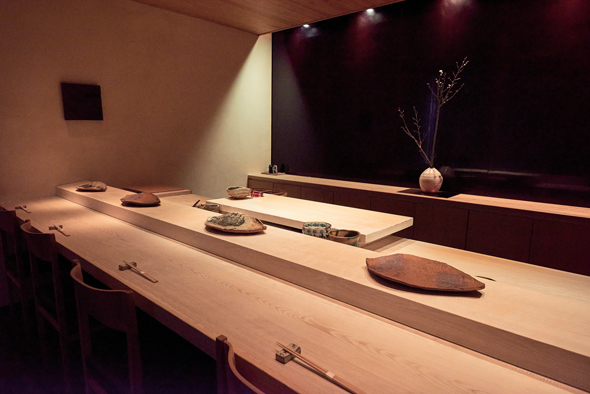 3階には、千葉県の人気寿司屋「千葉たかおか」が「鮨たかおか」として移転オープン。素材から調味料まで千葉県産にこだわり、メニューはおまかせのみ。カウンター6席ある店内は完全予約制となる。