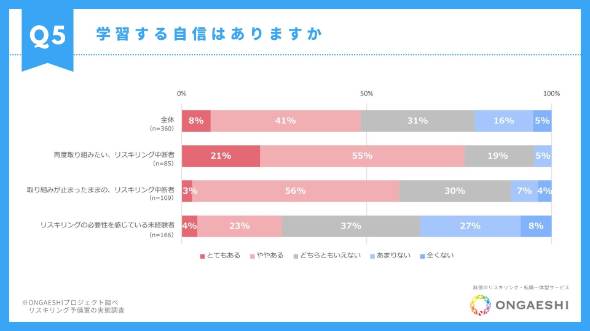 学習する自信については、「とてもある」(8%)「ややある」(41%)を合わせて、約半数の人があると答えた。