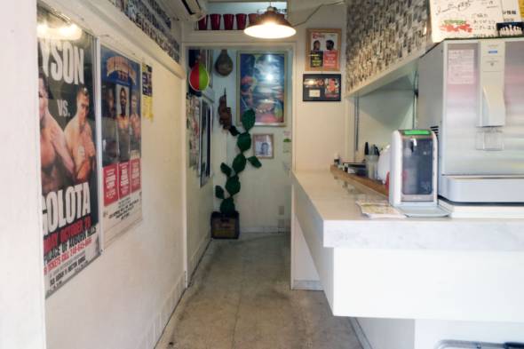 繁華街から少し離れた場所にあるアッパーカット。キャパは20人ほどで、2〜3のテーブルが並ぶテラス席と9人ほどが入れる店内のカウンター席がある。