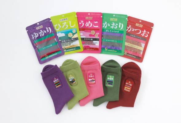 三島の刺繍ソックスは、第1弾として「ゆかり」「ひろし」「あかり」の3種類を2023年3月に発売した。三島食品社の本社が広島にあることから、ご当地商品として広島県内で展開する靴下屋5店舗と靴下屋広島本通り店オンラインショップ、加えて三島食品公式オンラインストアで数量限定販売したところ、1週間でほぼ完売となった。