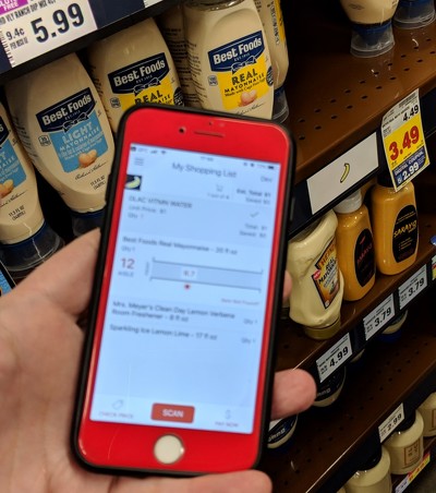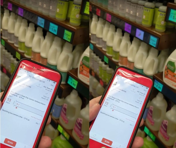 見つけた商品を取って、スキャンする。買い物リストの商品を全てスキャンしたら、セルフレジコーナーで支払う。アプリ登録したクレジットカードもしくはデビットカードで支払いを完了し、完了画面をセルフレジコーナーのスタッフに見せる――。