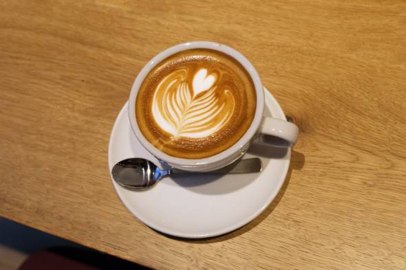 コスタコーヒーでは、フラットホワイトをはじめとした一部にラテアートが施されており、これも他店との差別化戦略の一つ。40時間ほどの訓練を通じて、バリスタを育成している。