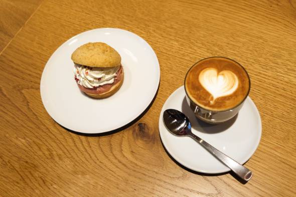 フラットホワイトはラテより少し苦味が強いが、ミルクのまろやかさもしっかりと感じられるようにしている。エスプレッソの苦味をより感じたい人向けに、フラットホワイトよりもミルクの量が少ない「コルタード」(470円)も用意している。