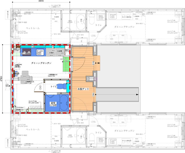ご存じの方も多いだろうが、ムービングハウスとは国際規格の海上輸送コンテナと同じサイズ(長さ12メートル、幅2.4メートル)の移動式木造住宅のことだ。コンテナと同サイズということで大型トレーラーに積載してそのまま輸送できるので、これまで多くの被災地で仮設住宅などとして活用されている。