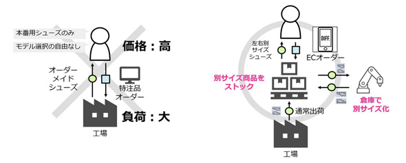 左右別サイズの靴を扱っているECサイトが登場した。サービスを提供しているのは「DIFF.」。ありそうでなかったサービスは、どのような特徴があるのか。