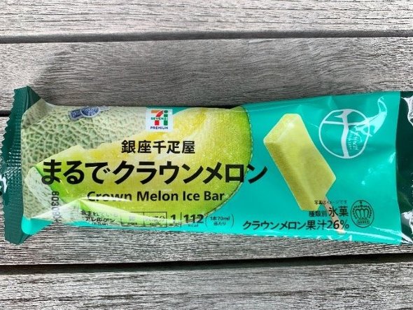 セブンが力を入れている「高級アイス」はどんな味なのでしょうか。実際に食べてみました。食べたのは、セブンが4月15日から投入を始めた「銀座千疋屋 まるでクラウンメロン」(321円)というアイスバーです。