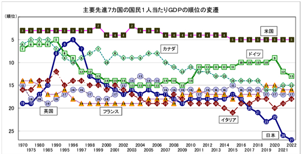 しかし、2018年に「外国人労働者の受け入れ拡大」を表明してからこのポジションはどんどん低下して、韓国にも抜かれてしまう。2022年は同4万5910ドルで、OECD加盟諸国38カ国の中で27位まで転落した。