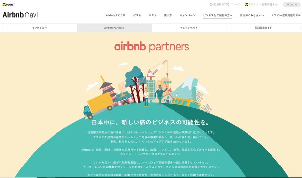 Airbnbでは「Airbnb Partners」という外部企業とのゆるやかなパートナー組織があって、そこにはANAやCCCなど、140社ぐらいの日本企業が入っています。Airbnbは外資の企業ですが、これら日本企業と一緒に「もっとこうしよう、ああしよう」という話を毎年させていただいています。