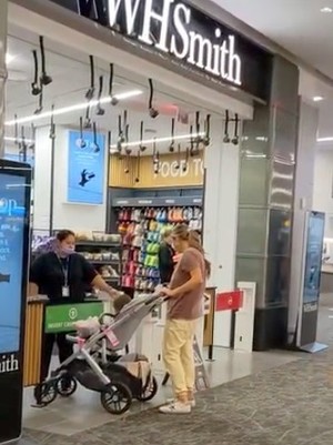 乳母車を押した女性が入店しようとクレジットカードをタッチしていましたが、ゲートが邪魔でうまく入店できませんでした。すると、店内で補充作業をしていた女性従業員が歩み寄り、声をかけました。