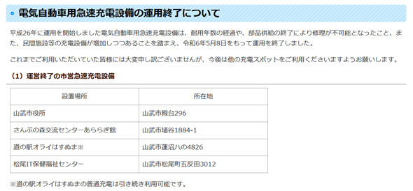 東京駅から総武線快速で約90分の場所に、千葉県山武市というところがある。九十久里浜に面した自然の豊かな場所だが、EVシフトという世界的な潮流を早々にとらえて、補助金を使って2014年10月に市役所などに急速充電器を4基設置していた。しかし、それが2024年5月に運用が停止され、撤去されることとなったのである。