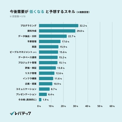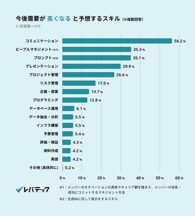 レバテックが過去にエンジニア採用担当者に対して行った調査*2によると、「生成AIの出現によって今後エンジニアにとって必要となるスキルは変化すると思うか」という質問に対して、過半数が「変化すると思う」(57.8%)と回答しました。