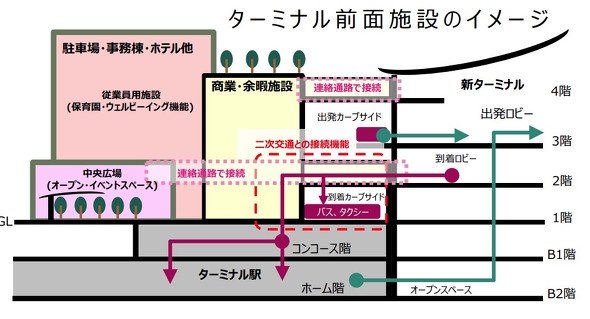 この計画によれば、現在の成田空港駅、空港第2ビル駅からターミナルビルがなくなる。東成田駅は北貨物地区や成田空港警察署、国土交通省関連施設の最寄り駅として機能しそうだけれど、北貨物地区の機能は新貨物地区に統合されるかもしれない。その他の場所も新旅客ターミナルから離れてしまうため、移転する可能性もある。この場合は東成田駅も成り立たない。